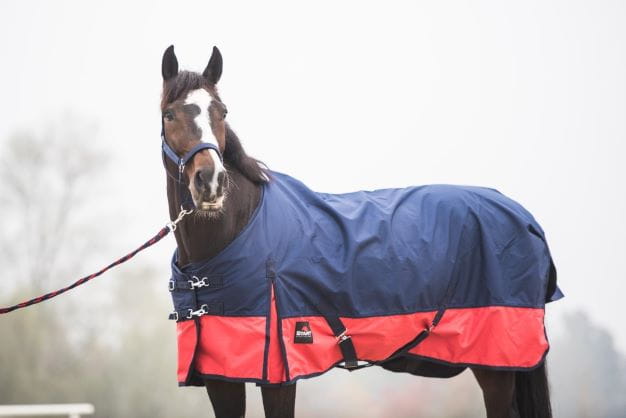 Pasy krzyżowe zapobiegające przesuwaniu się derki, odpinane pasy na nogi i klapę na ogon.