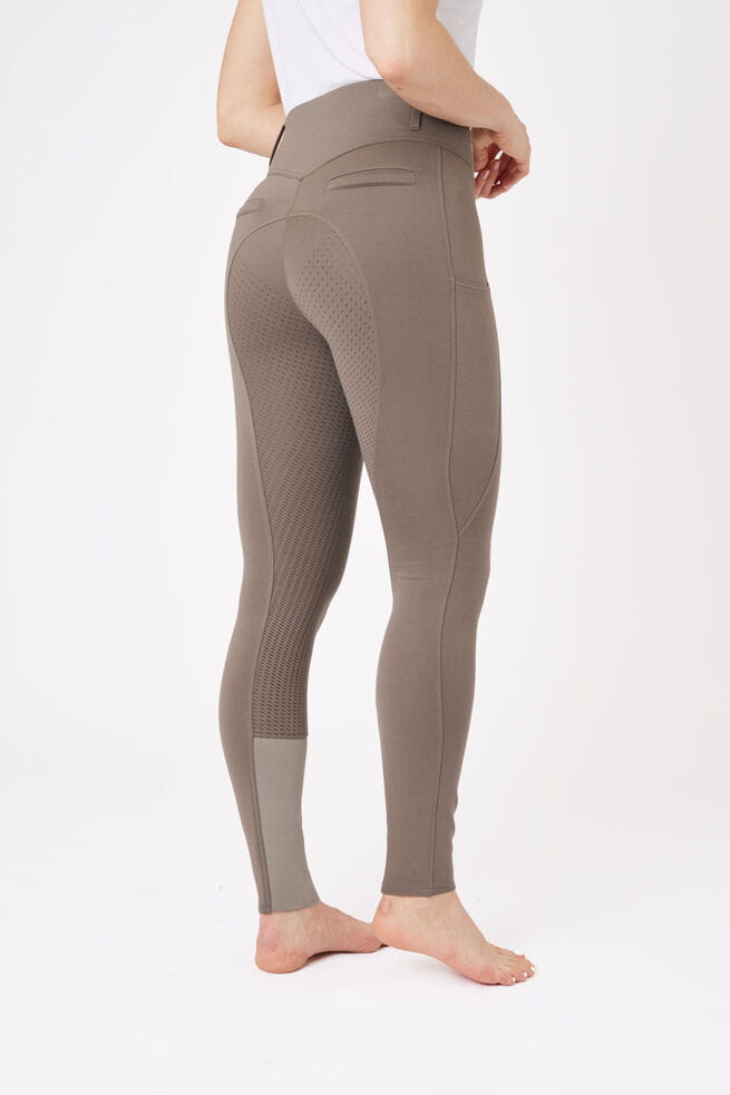 Bryczesy z pełnym lejem Mira doskonale sprawdzą się podczas codziennych treningów. Silikonowy lej sprawia, że żadne szwy nie są już potrzebne w okolicy kolan. Szeroki pas w talii ma zapięcie na dwa guziki. Całość uzupełniają szerokie szlufki, w które możesz wsunąć swój ulubiony pasek. Atrapy kieszeni z tyłu sprawiają, że ten model optycznie wyszczupla sylwetkę.