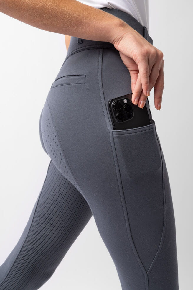 Bryczesy z pełnym lejem Mira doskonale sprawdzą się podczas codziennych treningów. Silikonowy lej sprawia, że żadne szwy nie są już potrzebne w okolicy kolan. Szeroki pas w talii ma zapięcie na dwa guziki. Całość uzupełniają szerokie szlufki, w które możesz wsunąć swój ulubiony pasek. Atrapy kieszeni z tyłu sprawiają, że ten model optycznie wyszczupla sylwetkę.