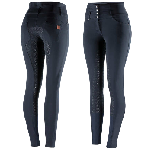 Bryczesy HORZE Tara damskie z pełnym lejem silikonowym granatowe