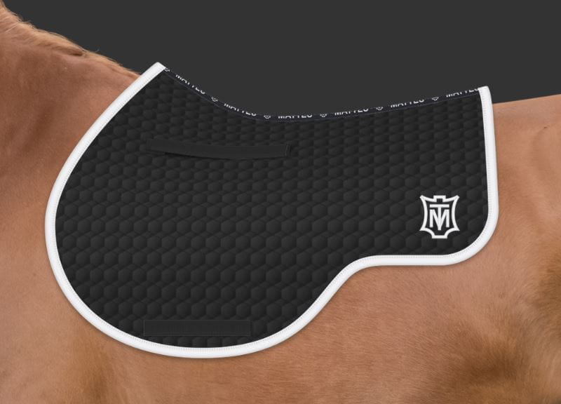 - wpasowanie podkładki czy czapraka w tunel siodła jest niezwykle istotne - czapraki Mattes posiadają system SPINERFREE czyli konstrukcję która zapewnia wolną przestrzeń wzdłuż linii grzbietowej dzięki której czaprak wpasowuje się, gwarantując przepływ powietrza i uwolnienie kręgosłupa od nacisku.