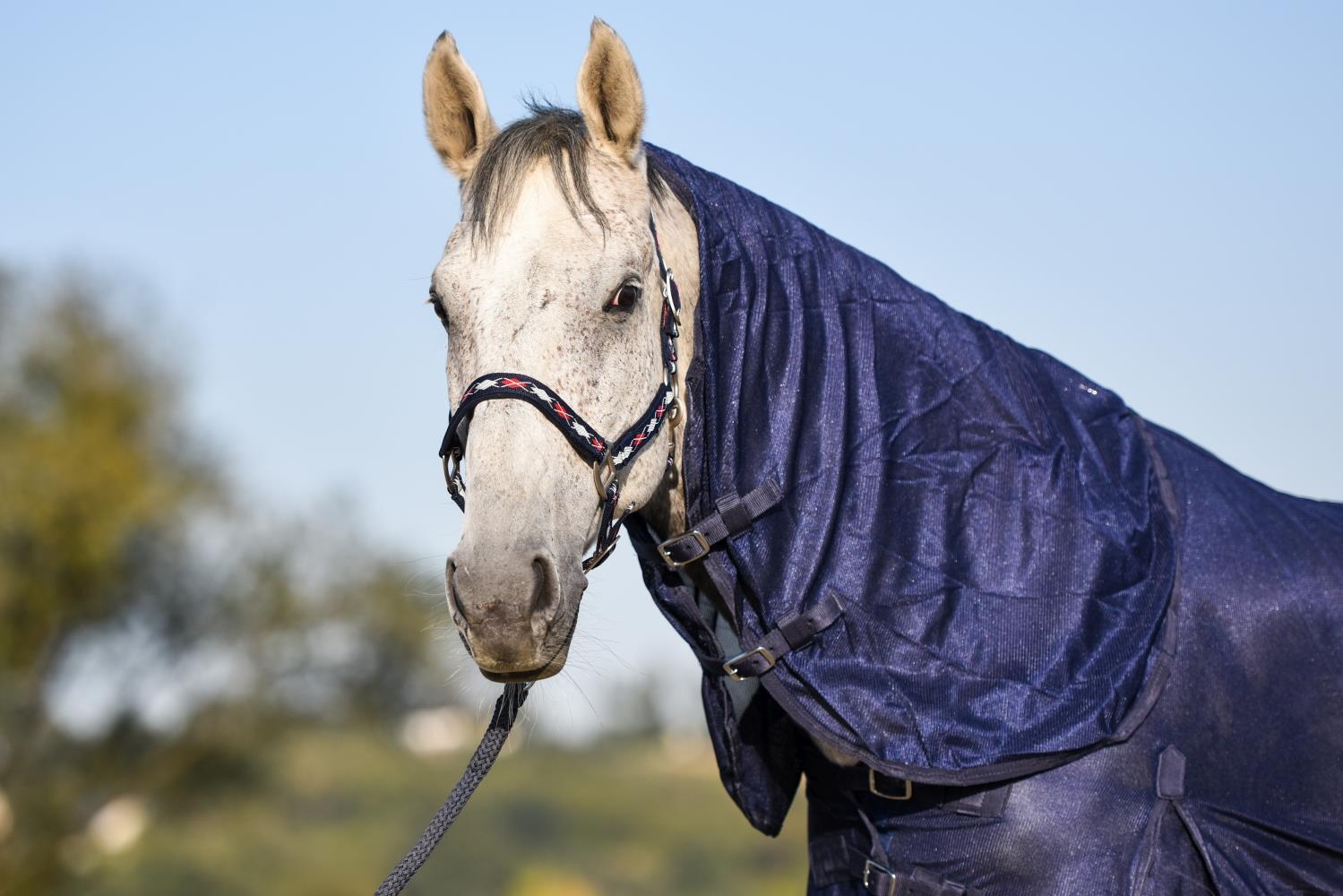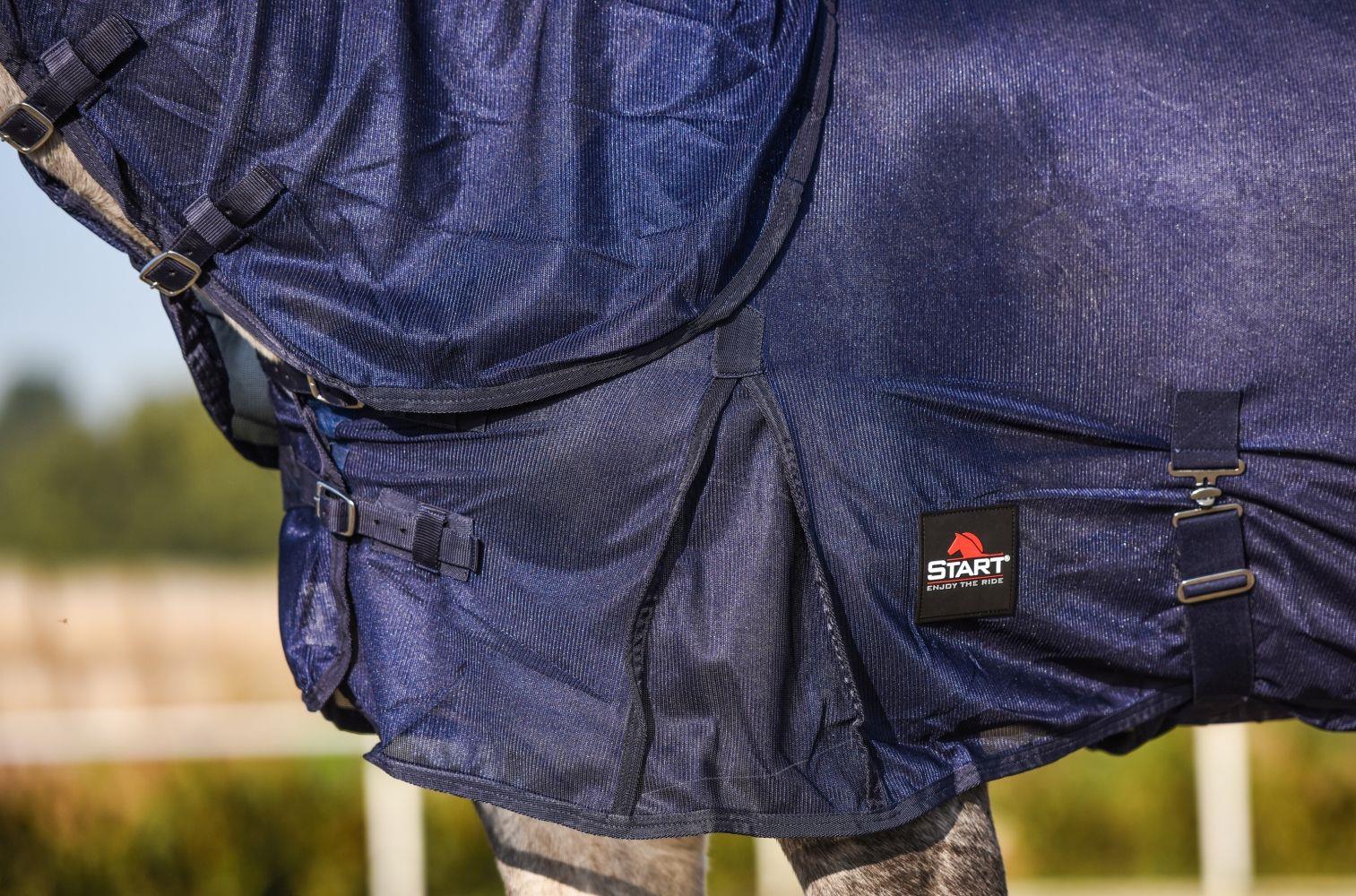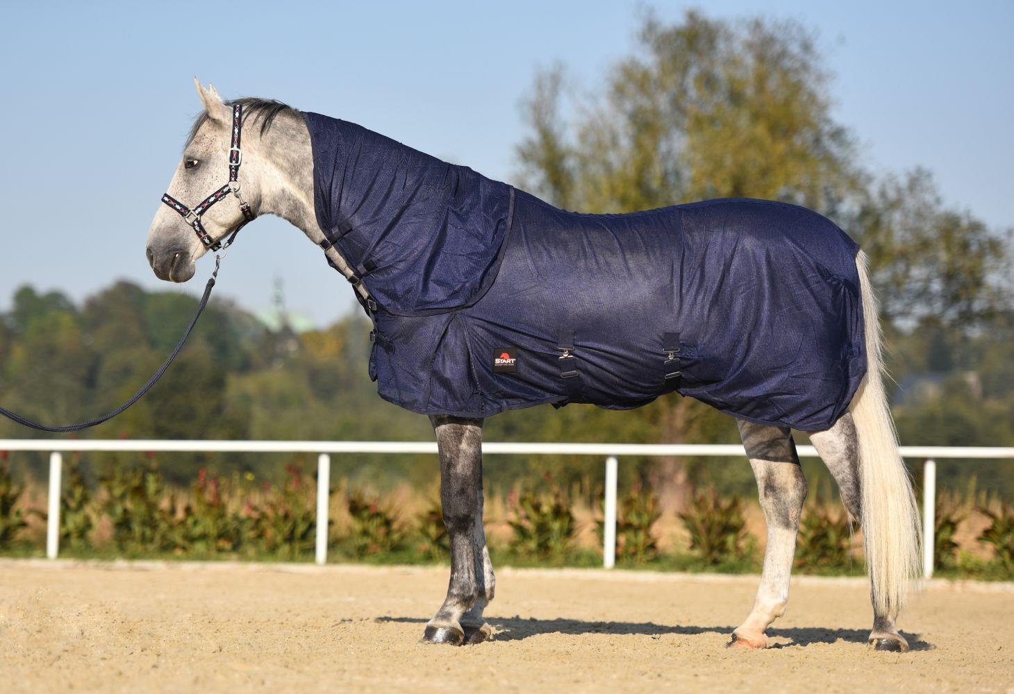Derka siatkowa z odpinanym kapturem i osłoną brzucha.