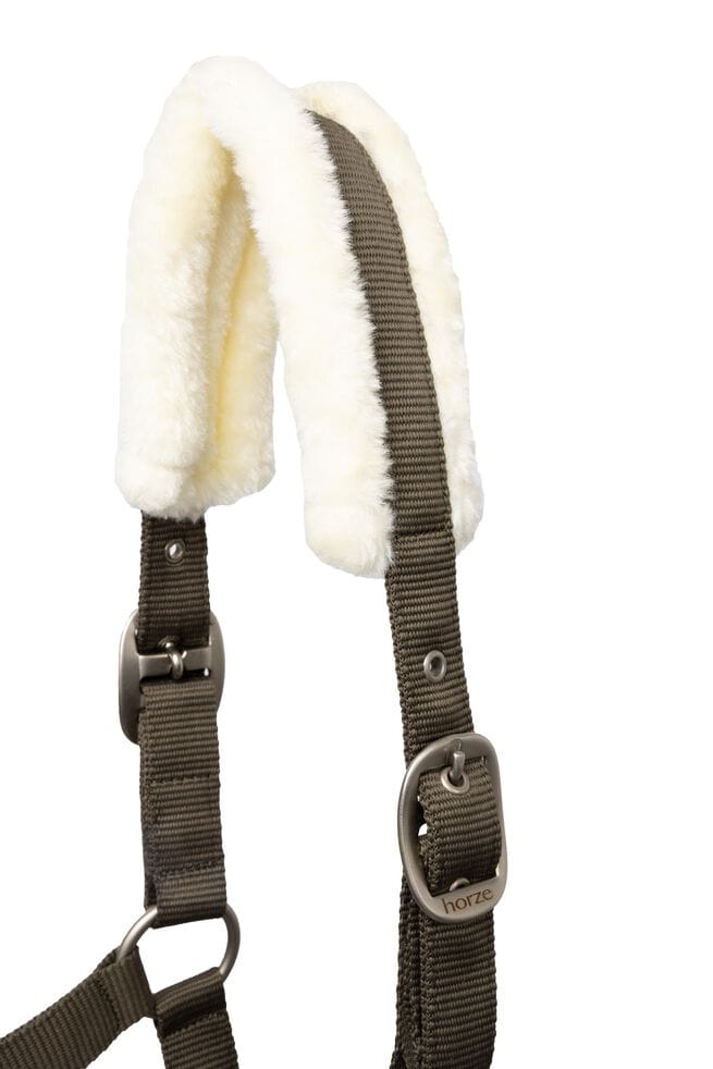 Kantar Horze Crescendo Howard ma miękką i wygodną polarową podszewkę pod nachrapnikiem i paskiem potylicznym oraz poręczne zapięcie na karabińczyk u dołu.