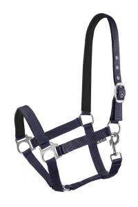Kantar wykonany z wytrzymałej taśmy nylonowej z podszyciem z nubuku. Posiada regulację w części potylicznej. Zapinany na karabińczyk.