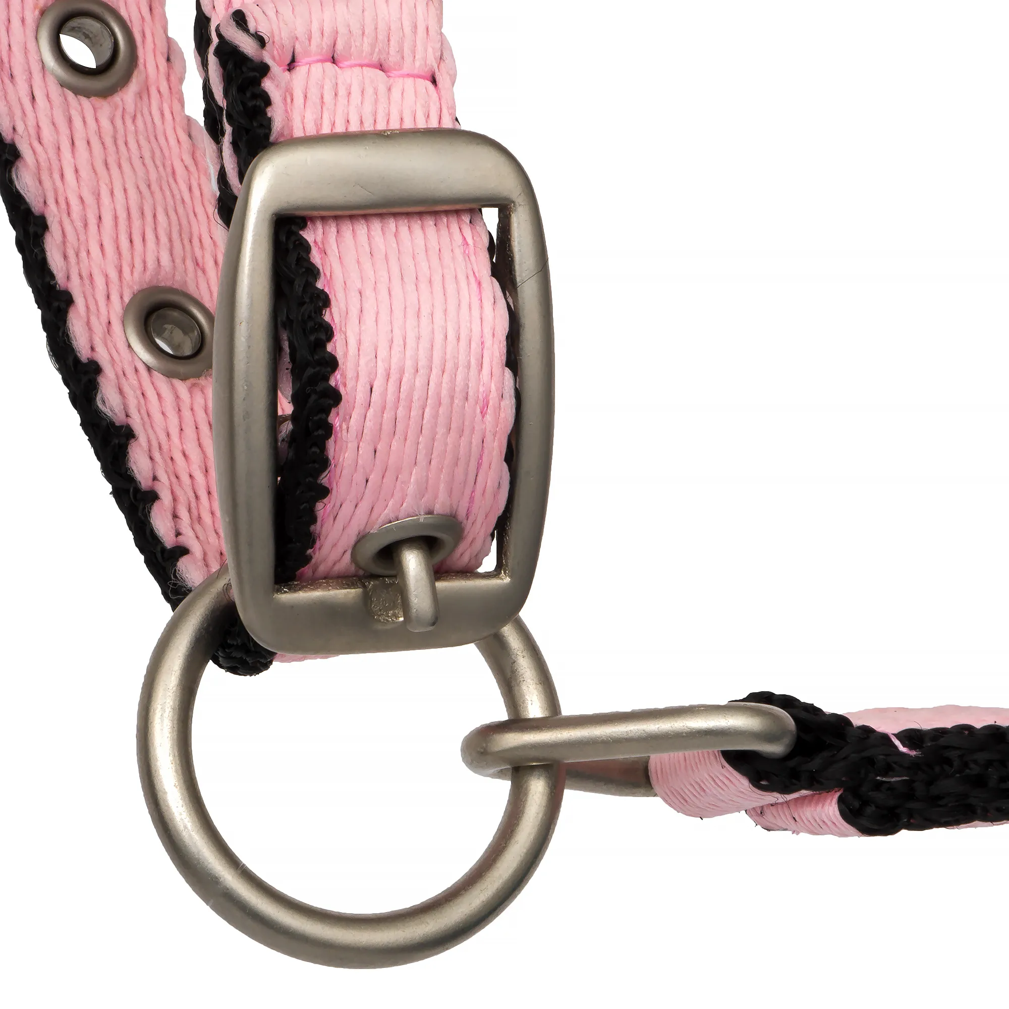 Lekki kantar dla źrebaków wykonany z wytrzymałej taśmy nylonowej. Regulacja w kilku punktach umożliwia dokładne dopasowanie do rosnącej głowy młodego konia. Prosta, bezpieczna konstrukcja oraz solidne metalowe okucia sprawiają, że kantar doskonale sprawdza się podczas nauki prowadzenia i codziennej obsługi.