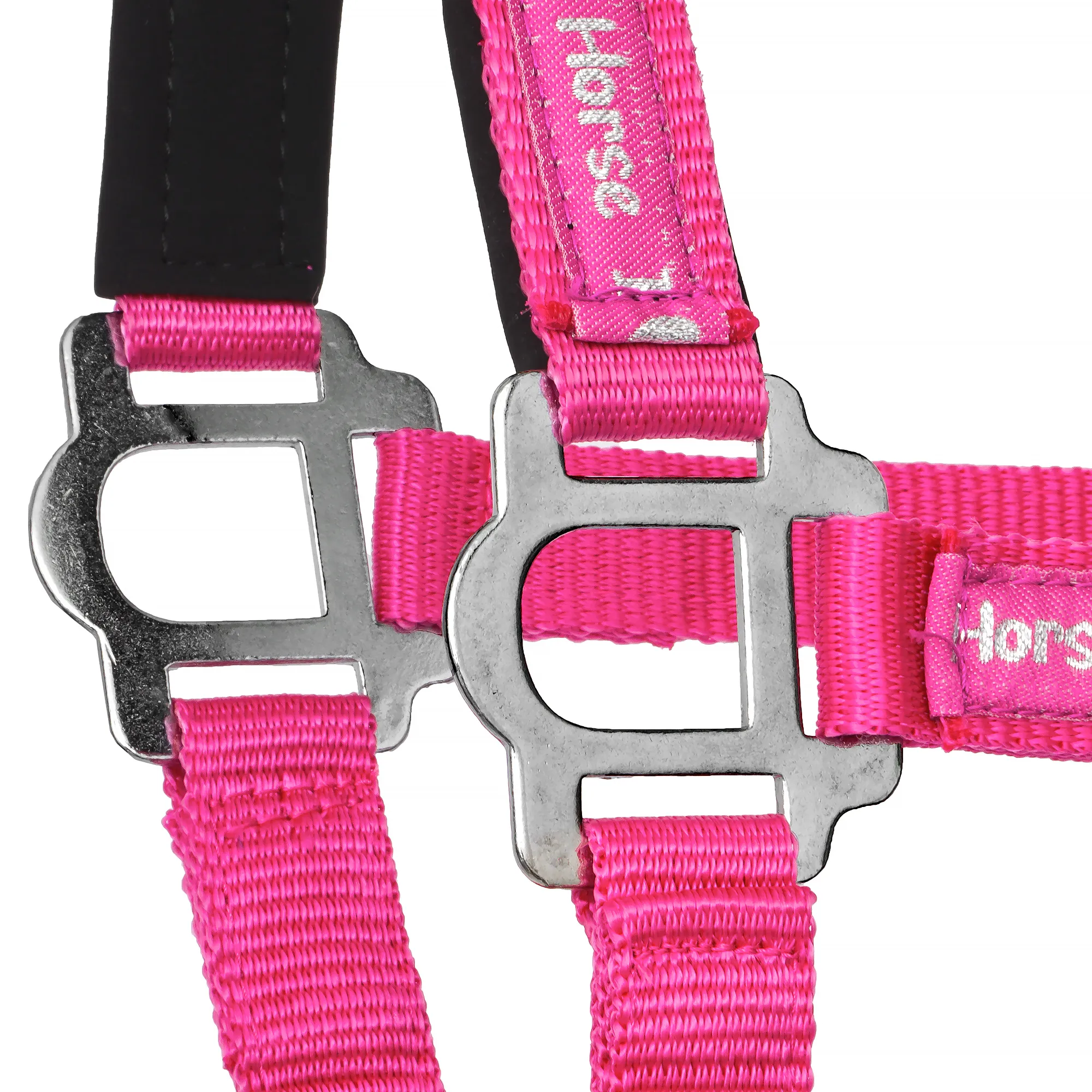 Praktyczny kantar z wytrzymałej taśmy nylonowej w intensywnym, wyrazistym kolorze. Miękkie elementy przy potylicy i nachrapniku poprawiają wygodę noszenia i ograniczają ryzyko otarć. Możliwość regulacji pozwala na optymalne dopasowanie. Mocne, metalowe okucia sprawdzają się w codziennym użytkowaniu – zarówno podczas pracy w stajni, jak i w transporcie.