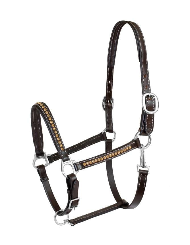 Kantar wykonany z wysokiej jakości skóry bydlęcej w kolorze czarnym. Obszyty grubą nicią, posiada podszycie z miękkiej skóry w części potylicznej oraz pod nachrapnikiem. Kantar posiada regulowany z dwóch stron nagłówek oraz podwójny pasek nosowy. Solidne wykonanie przyozdabiają klasyczne cyrkonie.