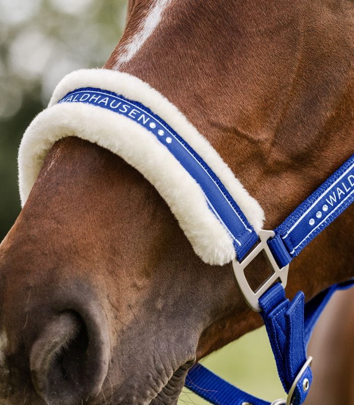 Stylowy kantar Waldhausen z modną taśmą ozdobną i matowym wykończeniem okuć. Prawdziwą ozdobą kantara są subtelne kryształki umieszczone na nachrapniku, które dodają elegancji i szyku. Miękkie podszycie ze sztucznego futerka na potylicy oraz nachrapniku zapewnia maksymalny komfort dla konia i zapobiega otarciom. Kantar posiada wielostopniową regulację w części potylicznej oraz na pasku pod brodą, co pozwala na idealne dopasowanie.