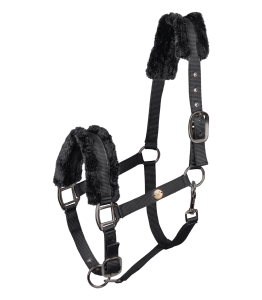 Elegancki, nowoczesny kantar z wysokiej jakości okuciami i subtelną metalową plakietką. Potylica oraz nachrapnik zostały podszyte miękkim, syntetycznym futerkiem dla większego komfortu konia. Doskonale komponuje się z pozostałymi elementami kolekcji Modern Rosé.