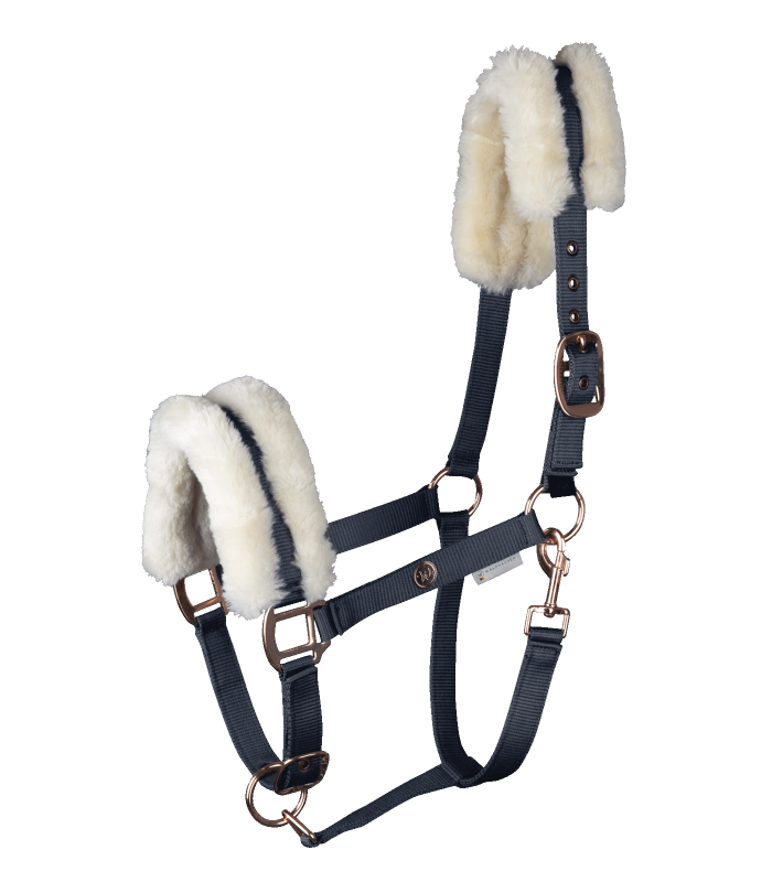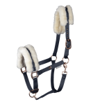 Elegancki, nowoczesny kantar z wysokiej jakości okuciami i subtelną metalową plakietką. Potylica oraz nachrapnik zostały podszyte miękkim, syntetycznym futerkiem dla większego komfortu konia. Doskonale komponuje się z pozostałymi elementami kolekcji Modern Rosé.