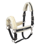 Wysokiej jakości kantar z miękkim podszyciem z syntetycznego futerka na potylicy, nachrapniku i paskach policzkowych. Łatwy w dopasowaniu dzięki regulacji pod brodą i po obu stronach paska potylicznego. Matowe, srebrne okucia oraz logo Waldhausen nadają mu elegancki wygląd.