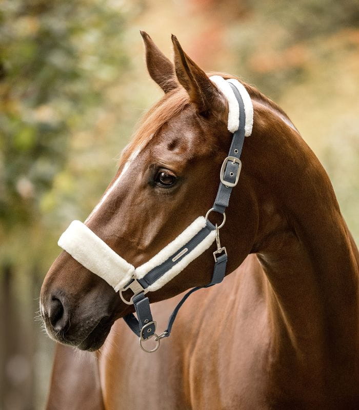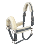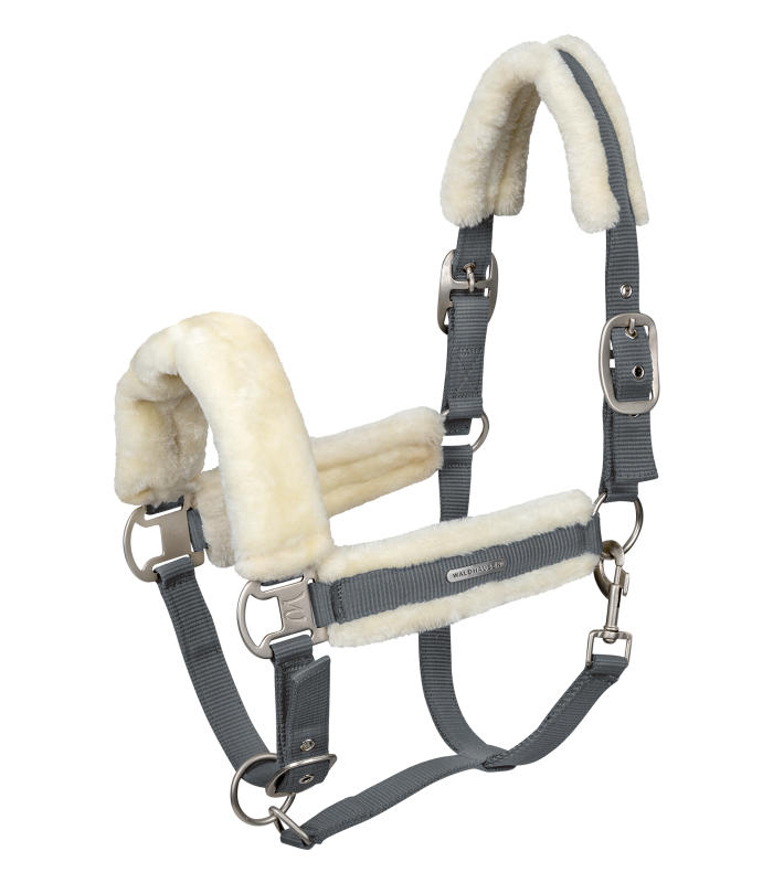 Wysokiej jakości kantar z miękkim podszyciem z syntetycznego futerka na potylicy, nachrapniku i paskach policzkowych. Łatwy w dopasowaniu dzięki regulacji pod brodą i po obu stronach paska potylicznego. Matowe, srebrne okucia oraz logo Waldhausen nadają mu elegancki wygląd.
