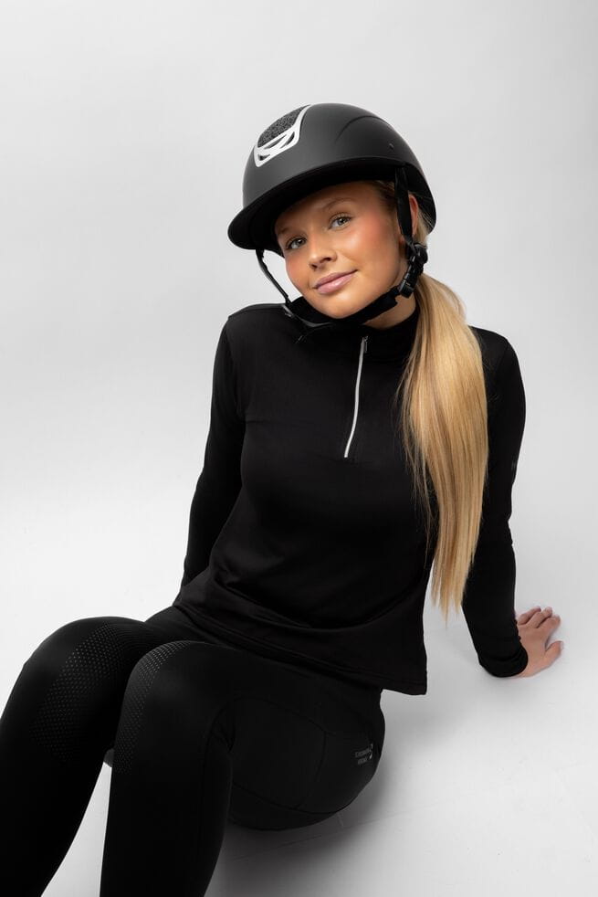 Chroń swoją głowę podczas jazdy konnej za pomocą tego trwałego kasku jeździeckiego z ozdobą z kryształów.