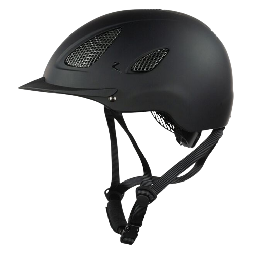 Ten sportowy kask do jazdy konnej jest odporny na silne uderzenia, a otwory wentylacyjne zapewniają wygodę dzięki dużemu przepływowi powietrza, aby głowa była chłodna. Wizjer zapewnia idealną ochronę. System pokręteł pozwala dostosować go do idealnego dopasowania. Wyściółka z pianki zapamiętującej kształt otula głowę, zapewniając jednocześnie ochronę w razie upadku. Elastyczny brzeg daszka zwiększa bezpieczeństwo.