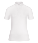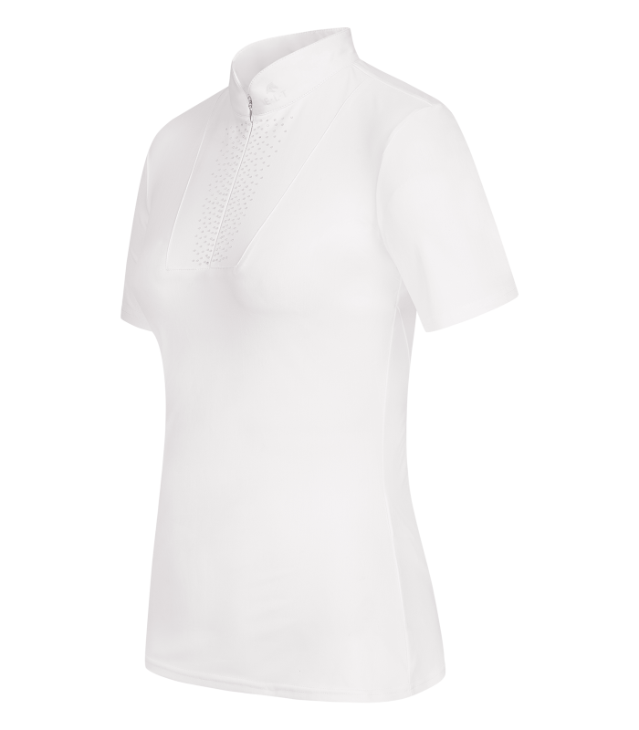 Elegancka koszula konkursowa Paola z krótkim rękawem, wykonana z nowoczesnego materiału technicznego, który zapewnia wysoki komfort noszenia podczas zawodów jeździeckich. Taliowany krój doskonale dopasowuje się do sylwetki, podkreślając sportowo-elegancki charakter koszuli.