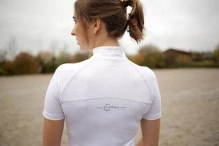 Bardzo atletyczna koszulka, idealna do sportów jeździeckich! Szybkoschnący materiał odprowadza pot i zapewnia zrównoważoną temperaturę pod kurtką. Przewiewna siateczkowa wstawka z tyłu zapobiega gromadzeniu się ciepła i wygląda bardzo ekstrawagancko!