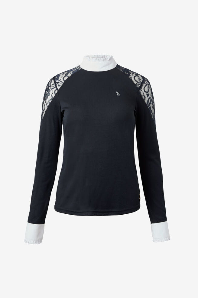 Koszulka konkursowa HORZE damska Sylvie z długim rękawem i koronką granatowa