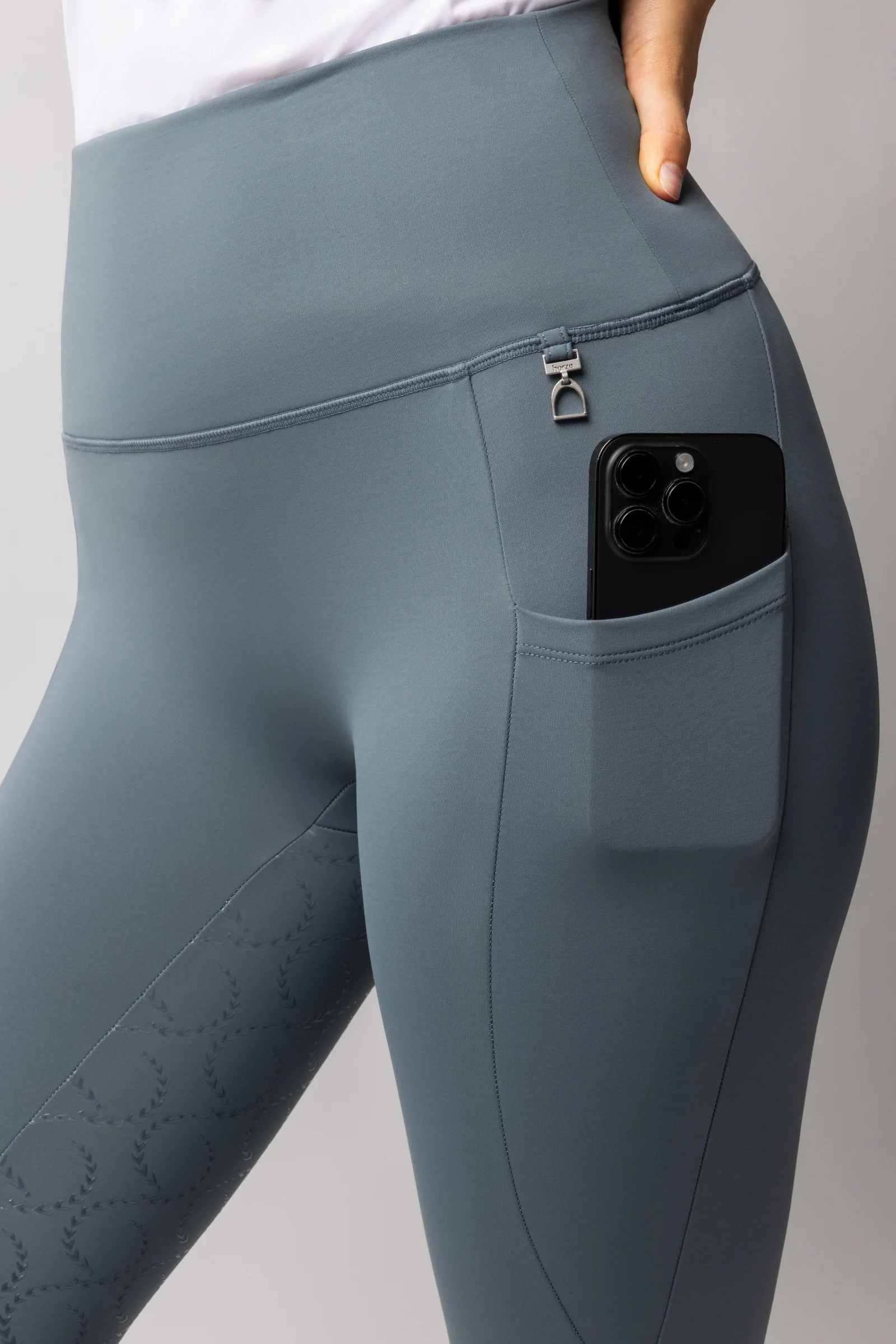Zachowaj ciepło i wygodę w siodle dzięki tym termicznym legginsom jeździeckim. Wysoki stan zapewnia odpowiednie dopasowanie, a kieszenie na telefon na udach pozwalają mieć pod ręką wszystkie niezbędne rzeczy. Wykonane z termicznego materiału z miękką, szczotkowaną wyściółką, legginsy te zapewniają ciepło i pełną swobodę ruchów, a pełny lej zapewnia pewny chwyt.