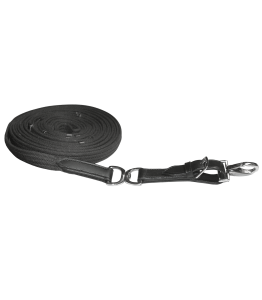 Funkcjonalna i wygodna lonża, idealna do codziennego treningu z ziemi. Wykonana z wytrzymałego materiału taśmowego, zapewnia dobry chwyt i trwałość. Dzięki skórzanym uchwytom oraz obrotowemu łączeniu z przodu lonży, zapewnia komfort i kontrolę podczas pracy z koniem.