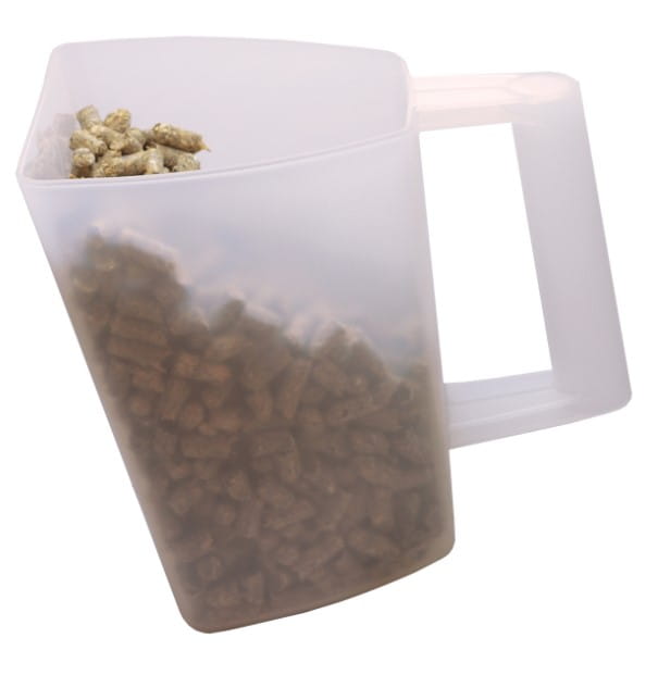 Przezroczysta miarka do paszy. Posiada miarkę. Bardzo wytrzymała.