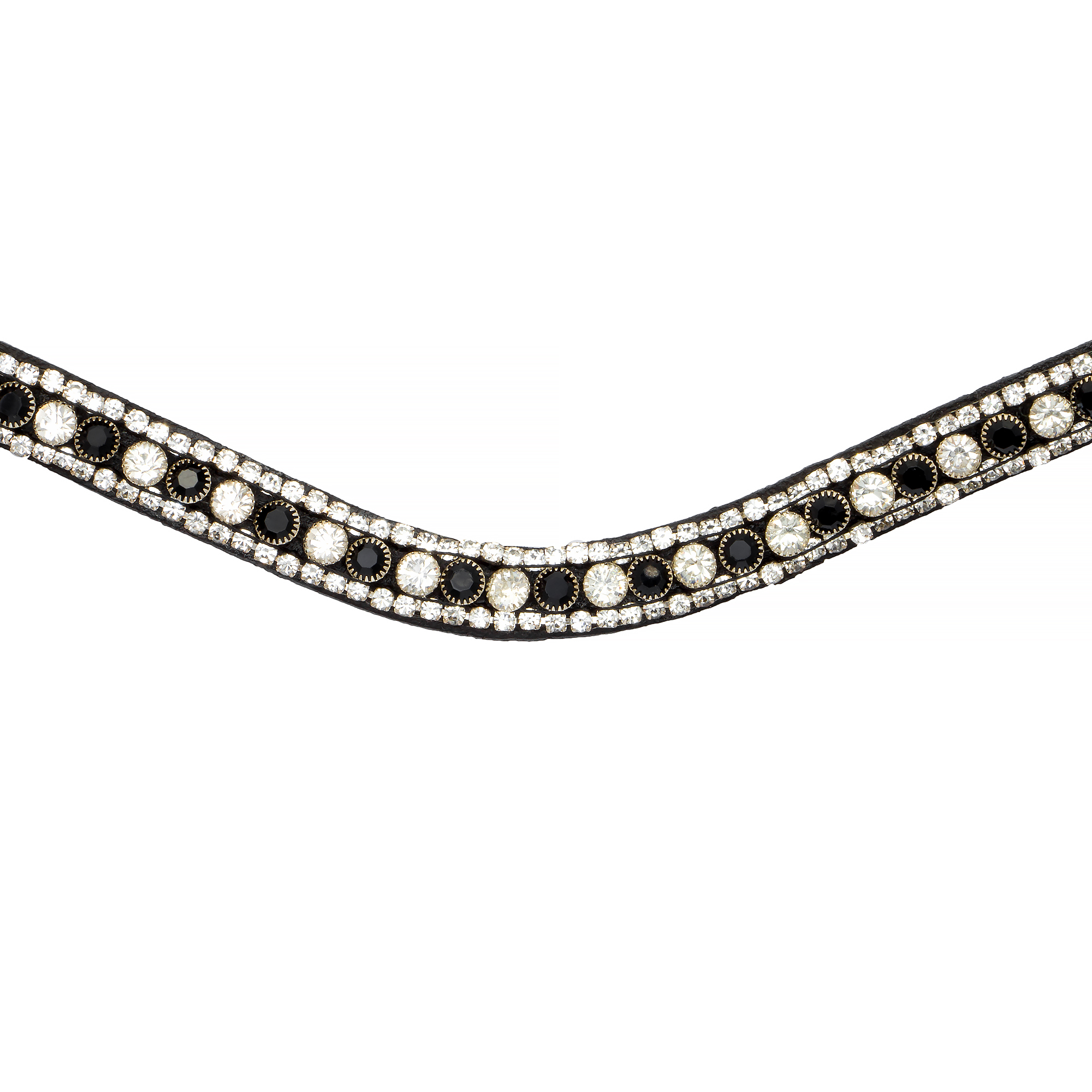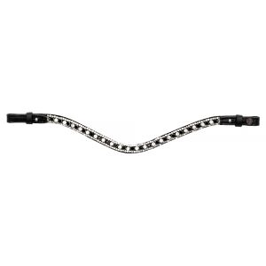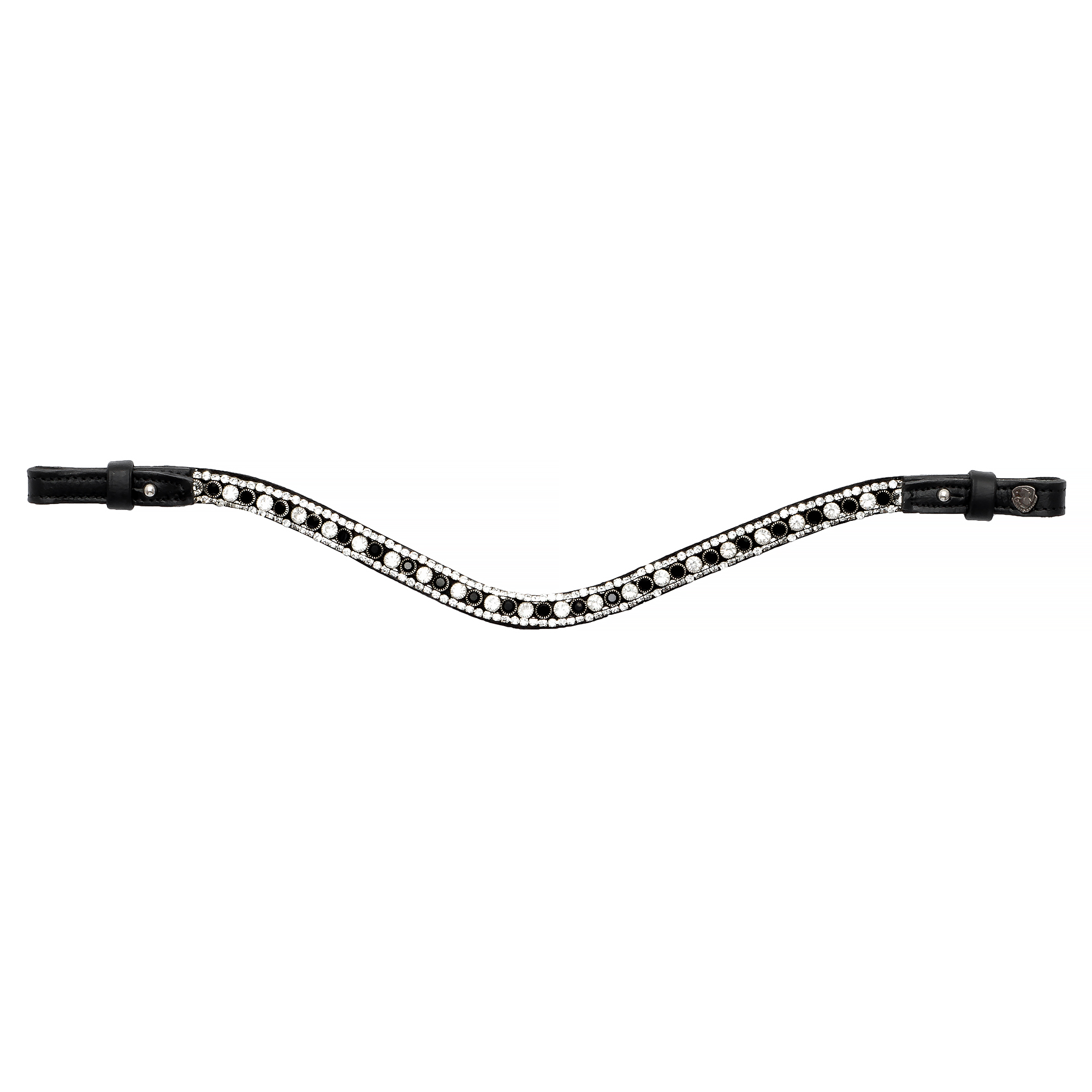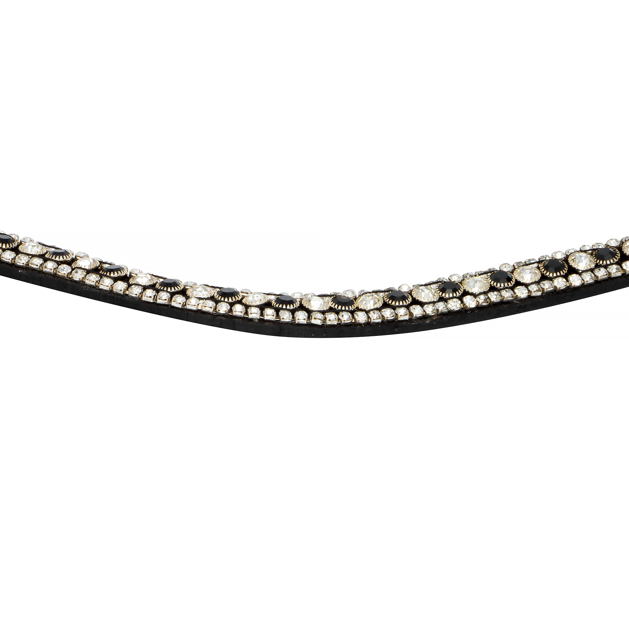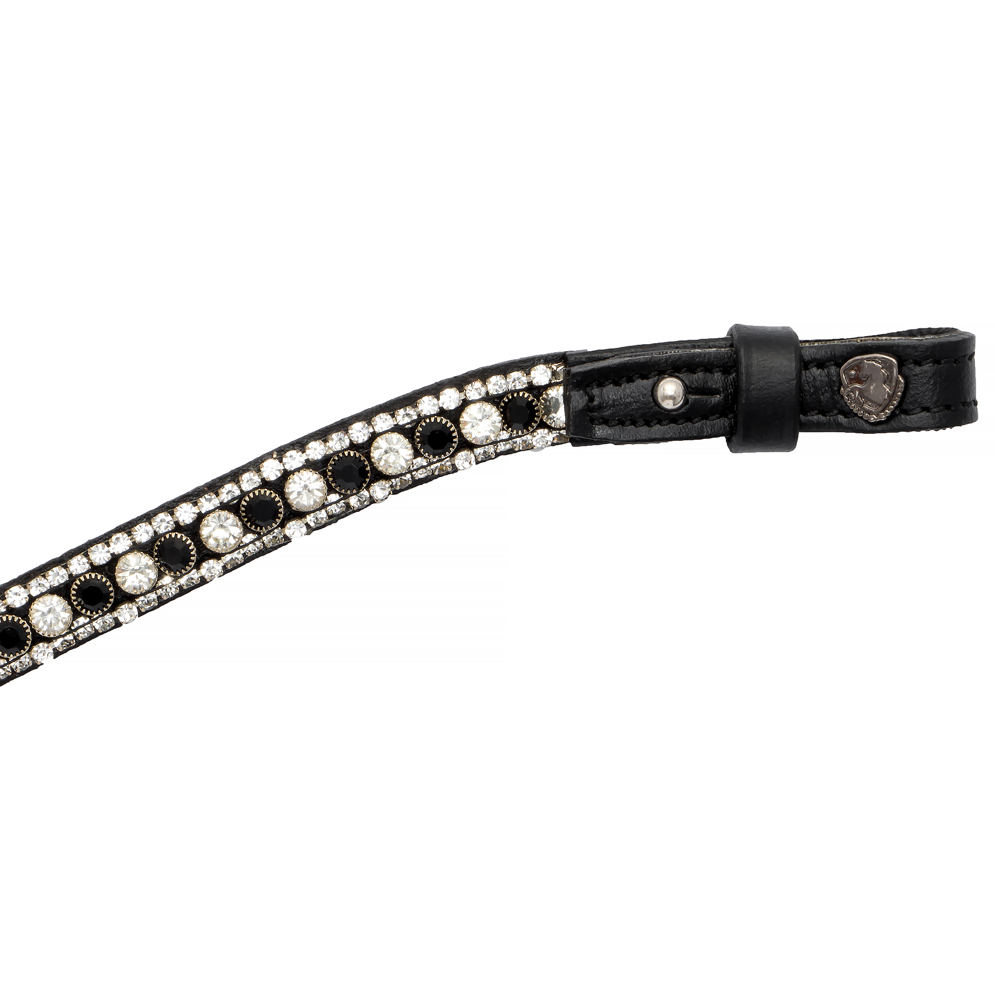 wykonany z wysokiej jakości miękkiej skóry naturalnej, profilowany kształt w łuk – zapewnia idealne dopasowanie i komfort, ozdobiony kryształkami dla eleganckiego, stonowanego efektu, precyzyjne ręczne wykończenie gwarantujące trwałość i estetykę, pasuje do większości ogłowi o klasycznym mocowaniu