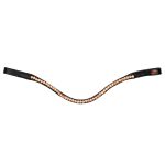 Naczółek ma charakterystyczny, lekko falowany kształt, a zdobienia z połyskujących kryształków w formie kwiatów nadają mu wyjątkowego uroku. Kryształki są starannie osadzone, trwałe i dostępne w różnych wariantach kolorystycznych, co pozwala dopasować naczółek do reszty sprzętu lub indywidualnego stylu.