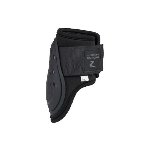 - Zestaw czterech ochraniaczy składa się z dwóch ochraniaczy przednich chroniących ścięgna i dwóch tylnych chroniących pęciny