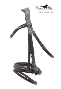 Ogłowie Canter Club MIRABILIS z nachrapnikiem "szwedzkim" to dobry wybór dla jeźdzców, którz chcą precyzyjnie prowadzić swoje konie oraz dla wrażliwych i delikatnych koni, któe wymagają stabilnego umocowania nachrapnika. Wygląd ogłowia odpowiada aktualnym trendom. Elegancję i efektowny wygląd zapewnia szeroki, matowy, zwężający się ku podgardlu nachrapnik oraz lekko opadający naczółek CRISTALLUS . Najwyższy komfort użytkowania ogłowia uzyskano dzięki : - wykonaniu z wysokiej jakości skóry - miękkiemu podszyciu części nosowej oraz potylicznej - anatomicznemu kształtowi część potylicznej - nachrapnikowi zaciskowemu z rolkowymi sprzączkami, umożliwiającymi dokładną regulację dopięcia, wyposażonemu w pasek krzyżowy ( skośnik ) - okuciom wykonanym ze stali nierdzewnej w kolorze srebrnym Ogłowie w komplecie z wodzami parcianymi ze stoperami. Dostępne w rozmiarach Cob i Full w kolorze czarnym.
