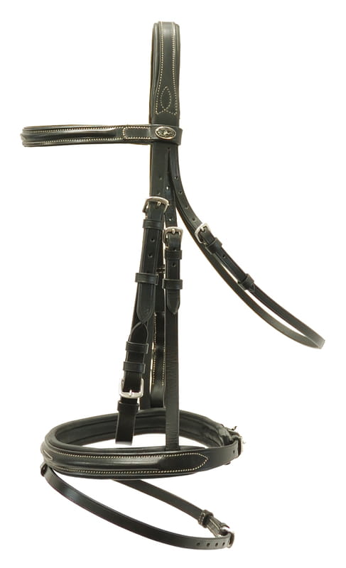 Przeszycia w kontrastowym kolorze na nachrapniku oraz naczółku - dodają ogłowiu elegancji.
