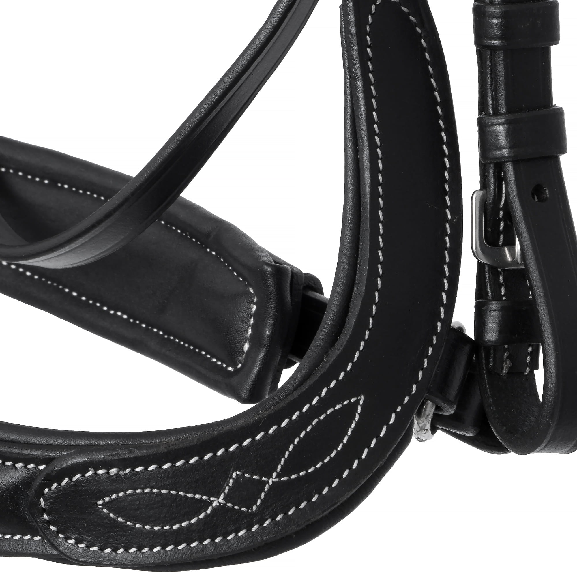 wykonane z wysokiej jakości skóry naturalnej, anatomiczny kształt dopasowany do budowy głowy konia, miękko podszyty nagłówek i nachrapnik – dla maksymalnego komfortu, ozdobne przeszycia nadające stylowego wyglądu, wytrzymałe okucia w kolorze srebrnym, klasyczny, elegancki design z dbałością o każdy detal, komfort, elegancja i precyzja wykonania – idealne dla jeźdźców, którzy chcą zapewnić swojemu koniowi nie tylko doskonałe dopasowanie, ale także wyjątkowy wygląd.