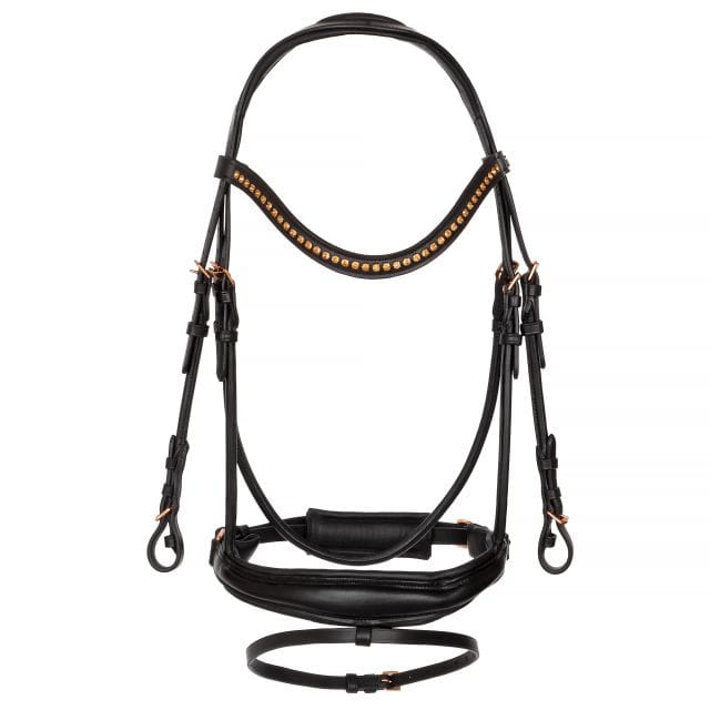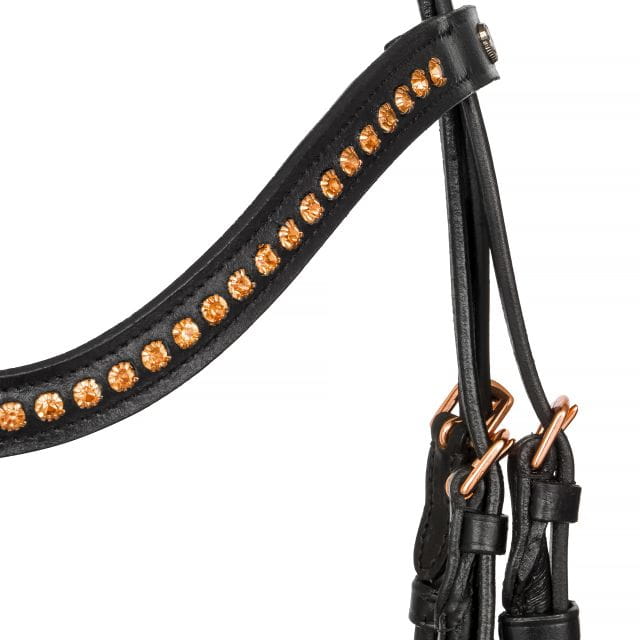 Skórzane ogłowie rurkowe Equestrian Queen z okuciami w kolorze różowego złota.