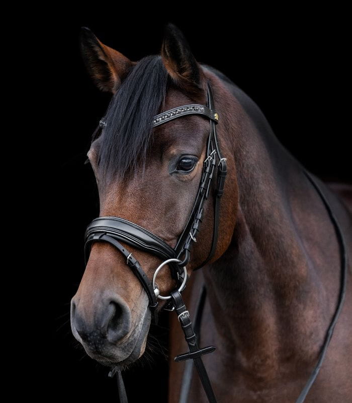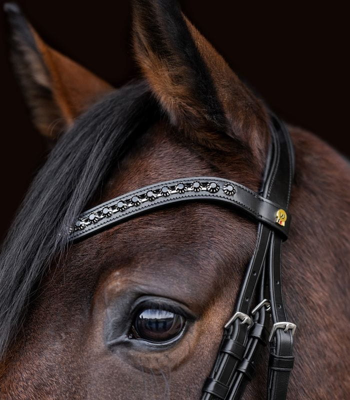 Okucia ze stali nierdzewnej – Trwałe i odporne na korozję, co gwarantuje długowieczność i wysoką jakość ogłowia nawet przy intensywnym użytkowaniu.