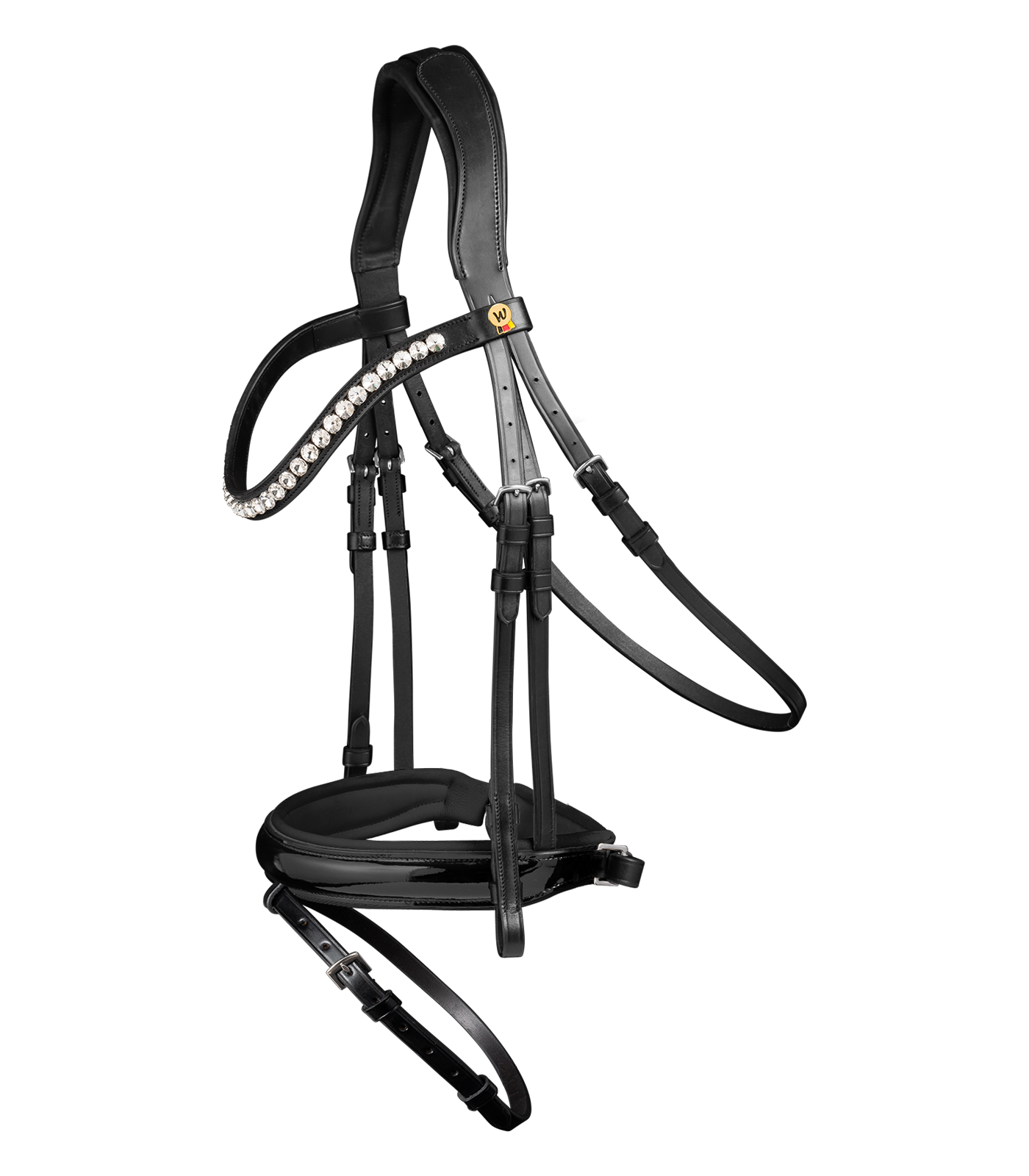 Zakrzywiony naczółek ozdobiony błyszczącymi kryształkami – Subtelna ozdoba, która dodaje ogłowiu eleganckiego i ponadczasowego charakteru.