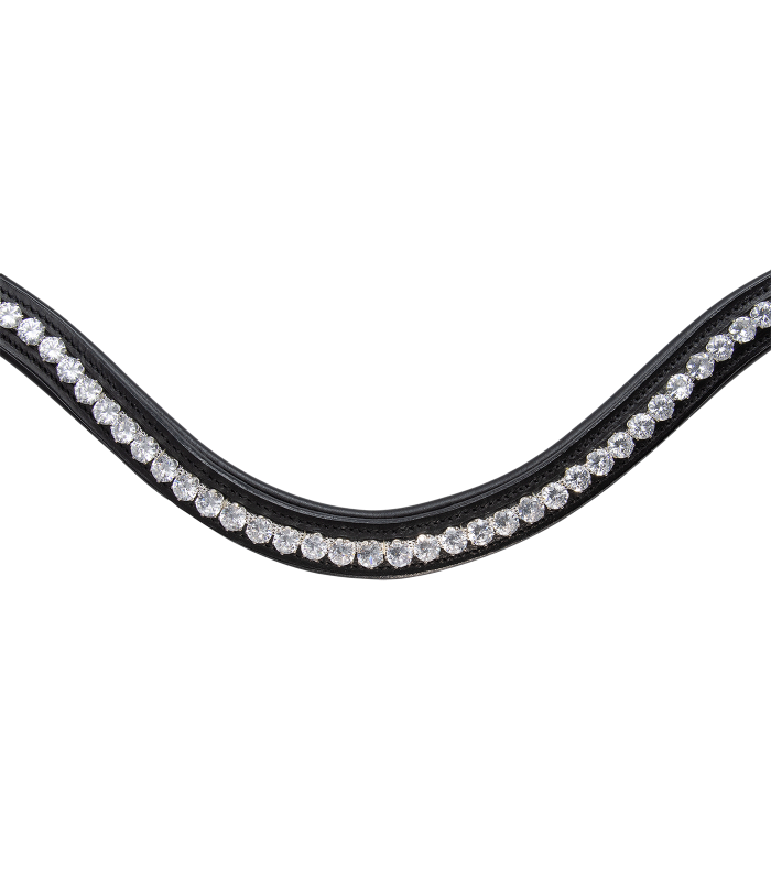 Wygięty naczółek z dużymi, przejrzystymi cyrkoniami – Elegancki naczółek ozdobiony dużymi, błyszczącymi cyrkoniami dodaje ogłowiu wyjątkowego blasku, podkreślając jego luksusowy wygląd.