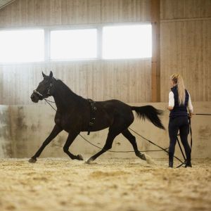 Nylonowy pas do lonżowania z wypełnieniem na grzbiecie wykonanym ze skóry syntetycznej to wspaniała pomoc szkoleniowa. Wiele pierścieni na grzbiecie umożliwia stosowanie wodzy pomocniczych lub innych pomocy szkoleniowych. Regulowany pas do lonżowania świetnie sprawdza się podczas rozgrzewki lub pracy na lonży, a czarny nylonowy materiał jest bardzo wytrzymały i szybko się nie zużyje.