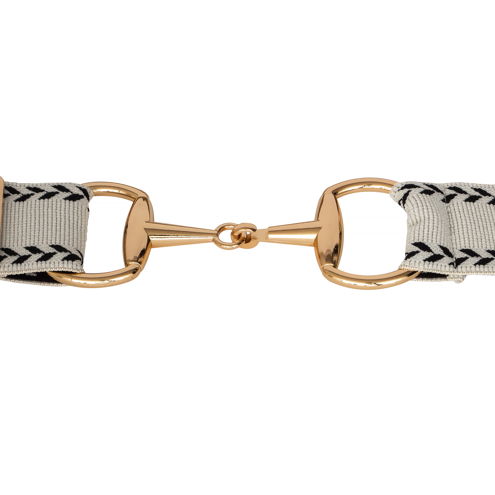 Pasek do spodni EQ.QUEEN Taylor to stylowy dodatek dla każdej miłośniczki jeździectwa. Charakterystyczny dla tej serii motyw wędzidła, który zdobi pasek, nawiązuje do klasycznych elementów jeździeckich, co sprawia, że jest to idealny wybór dla osób ceniących sobie elegancję połączoną z pasją do koni. Dostępny w trzech odcieniach, każdy z nich został wykończony złotymi klamrami, które dodają blasku i luksusu. Pasek wykonany z wysokiej jakości materiałów zapewnia trwałość i komfort noszenia, będąc nie tylko praktycznym, ale i dekoracyjnym elementem garderoby każdej jeźdźczyni.