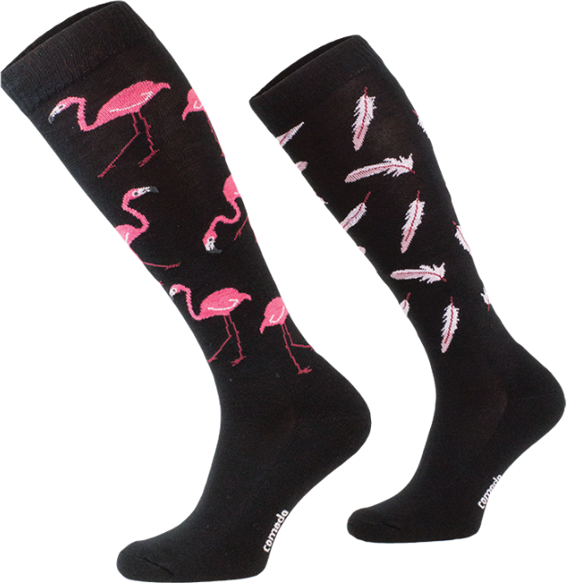 Podkolanówki jeździeckie COMODO SJBW - czarne w flamingi