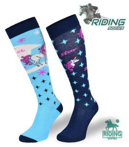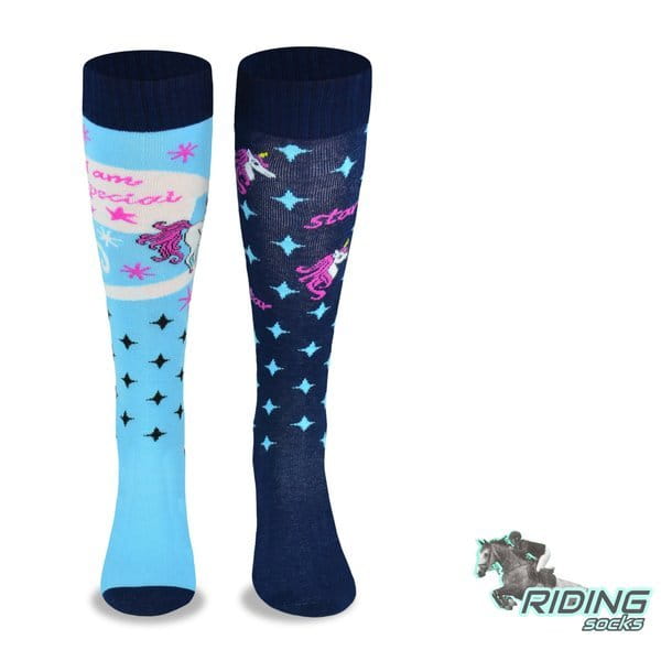 Podkolanówki jeździeckie COMODO SJBW – jednorożce blue