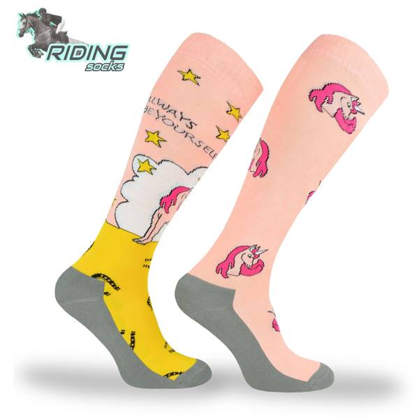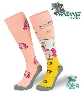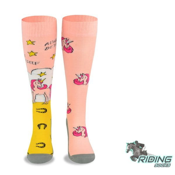 Podkolanówki jeździeckie COMODO SJBW – różowe jednorożce