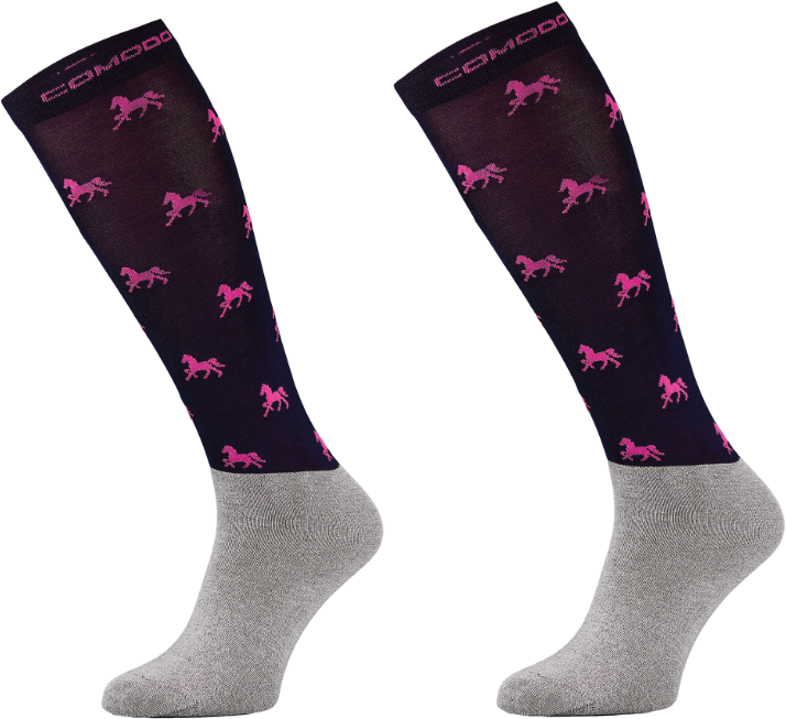 Podkolanówki jeździeckie COMODO SPJM – granatowe w konie