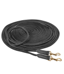 Wszechstronna podwójna lonża idealna do zaawansowanej pracy z koniem z ziemi. Przednia część wykonana z nylonowego, okrągłego plecionego sznura – gładko przesuwa się przez kółka prowadzące (nie dołączone). Tylna część z płaskiej taśmy dobrze leży w dłoni, zapewniając wygodny chwyt.