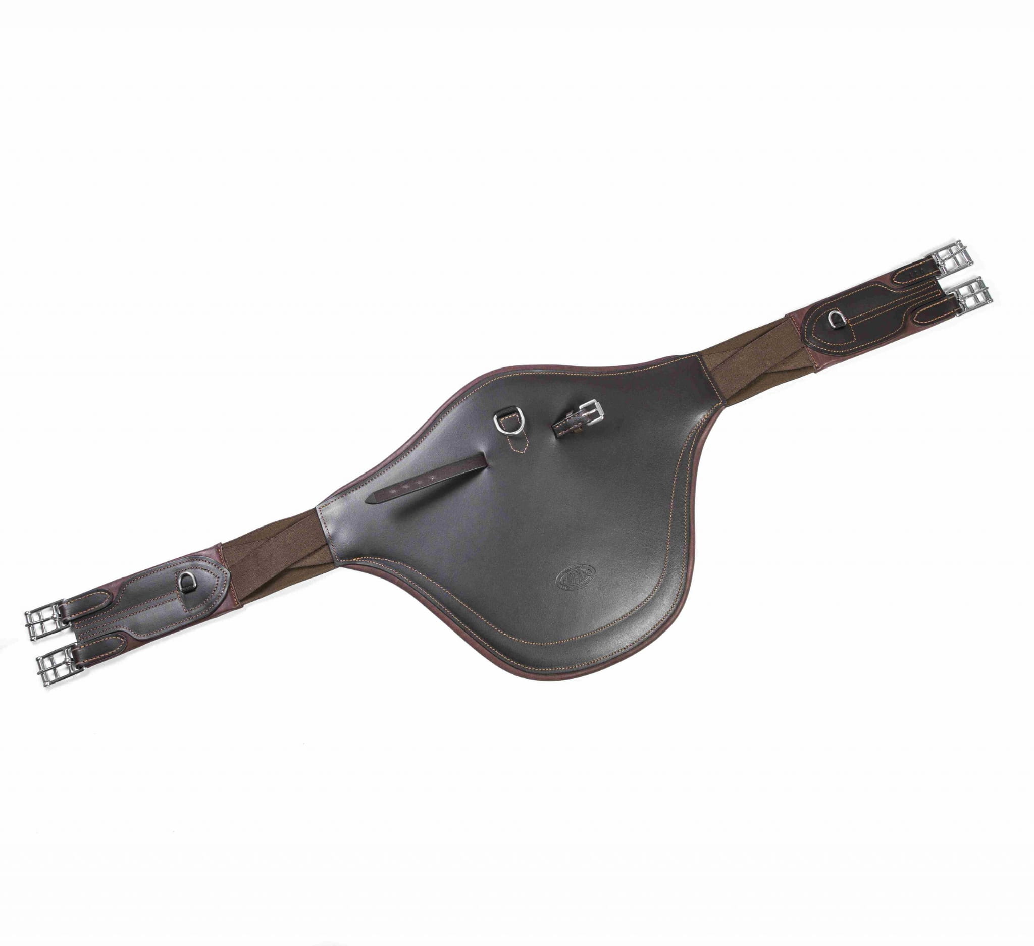 Ekskluzywny popręg skokowy oferujący maksimum bezpieczeństwa przy pełnej swobodzie ruchów. Wyposażony w fartuch chroniący brzuch konia przed uderzeniem podkowami, czy kopytami w trakcie skoku.