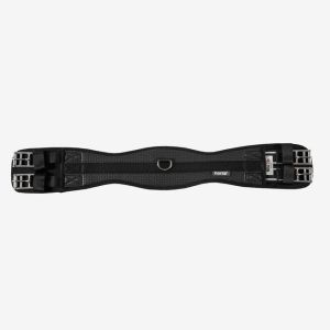 Anatomicznie profilowany kształt tego miękkiego, parcianego, ujeżdżeniowego popręgu zapewnia poczucie komfortu i trwałość. Zakończenie gumami po jednej stronie, sprzączki z rolkami ze stali nierdzewnej i pierścień w kształcie litery D zapewniają wygodę użytkowania. Tkanina jest łatwa w czyszczeniu i zachowa świetny wygląd przy minimalnej pielęgnacji.