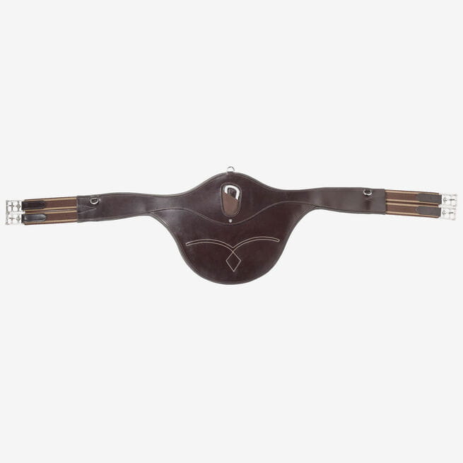 Popręg z fartuchem zapobiega skaleczeniom końskiego brzucha przez hacele w czasie skoków. Pomaga uniknąć zranień podczas skoków przez wysokie przeszkody. Hacele mogą zranić delikatną skórę konia. Gruba skóra, z której wykonano popręg z fartuchem pozwala chronić skórę konia przed ryzykiem zranienia hacelami. Wysokiej jakości popręg posiada pierścienie w kształcie litery D do przypięcia dodatkowych pomocy szkoleniowych, gumy po obu stronach i sprzączki z rolkami ze stali nierdzewnej gwarantujące łatwe zapinanie.