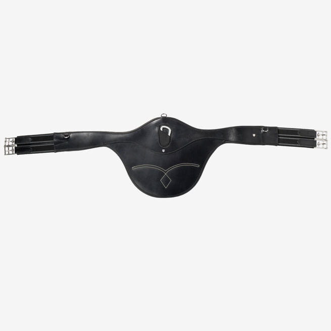 Popręg z fartuchem zapobiega skaleczeniom końskiego brzucha przez hacele w czasie skoków. Pomaga uniknąć zranień podczas skoków przez wysokie przeszkody. Hacele mogą zranić delikatną skórę konia. Gruba skóra, z której wykonano popręg z fartuchem pozwala chronić skórę konia przed ryzykiem zranienia hacelami. Wysokiej jakości popręg posiada pierścienie w kształcie litery D do przypięcia dodatkowych pomocy szkoleniowych, gumy po obu stronach i sprzączki z rolkami ze stali nierdzewnej gwarantujące łatwe zapinanie.