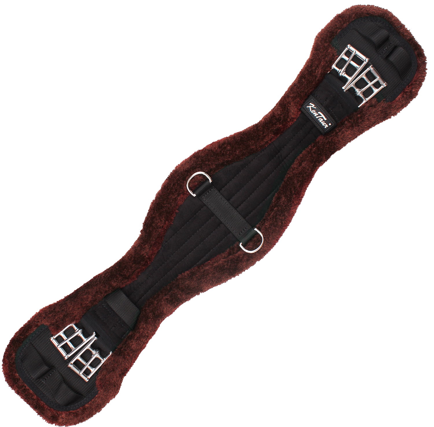 Podszycie z Wełny Syntetycznej: Miękka, przyjemna w dotyku wełna syntetyczna, która jest łatwa w pielęgnacji, podszywa popręg, zapewniając dodatkowy komfort i ochronę dla wrażliwych koni.