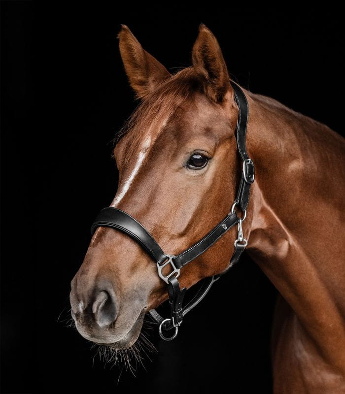 Elegancki kantar skórzany z anatomicznie wyprofilowanym nachrapnikiem i miękko wyściełanym naczółkiem oraz paskiem nosowym. Regulowany po obu stronach w części potylicznej i łatwo dopasowywany paskiem pod brodą. Pasek gardłowy szyty w okrąg, co dodaje lekkości i klasy.
