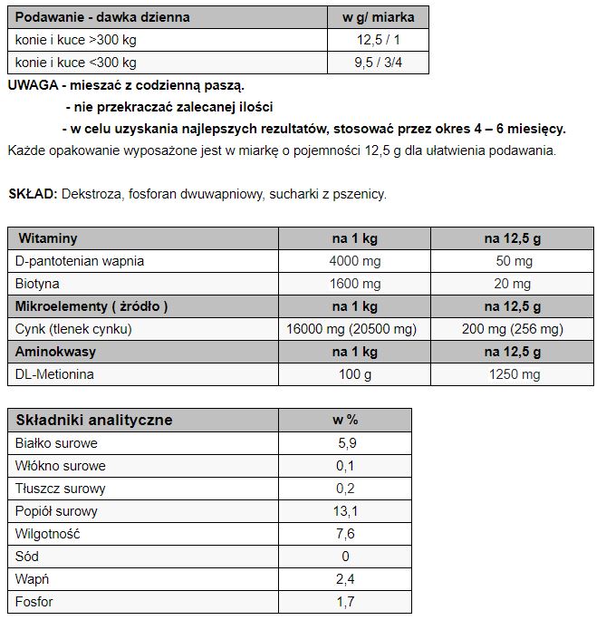 Cynk – ważny dla syntezy keratyny związanej z wytrzymałością kopyt i odpornością na obciążenia