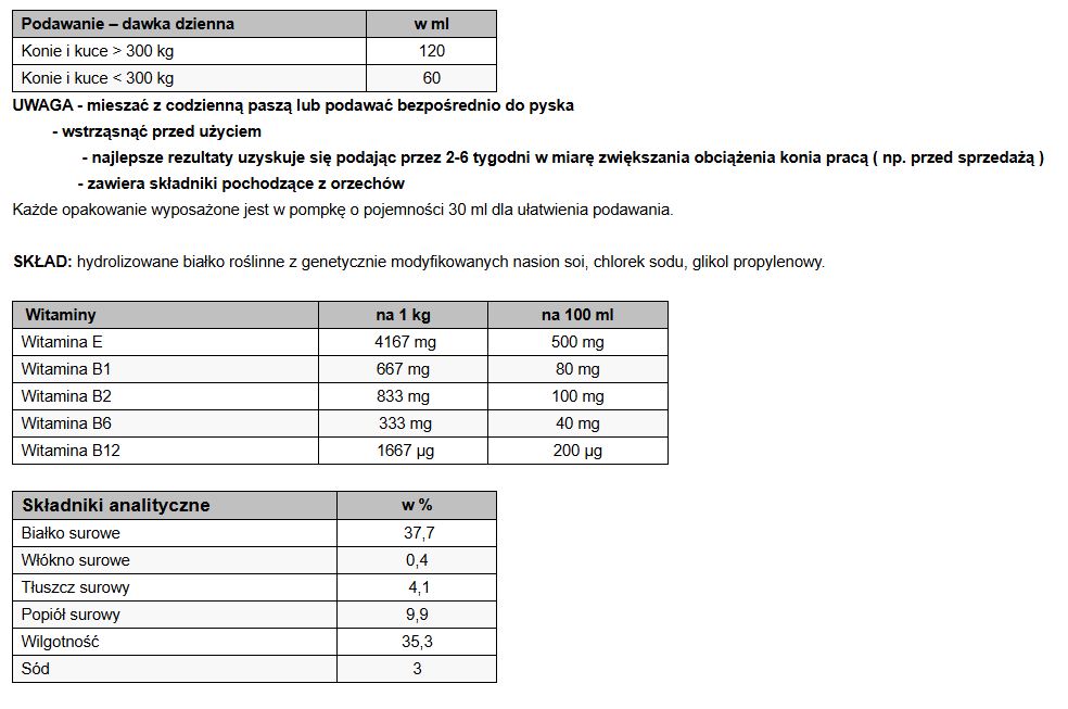 Optymalizuje rozwój mięśni i kondycję górnej linii „topline”, wykorzystując łatwo wchłanialne aminokwasy z białka roślinnego.