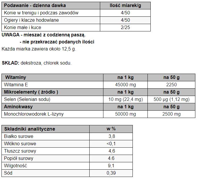 - młodych, rosnących koni na potrzeby mięśni i odporności